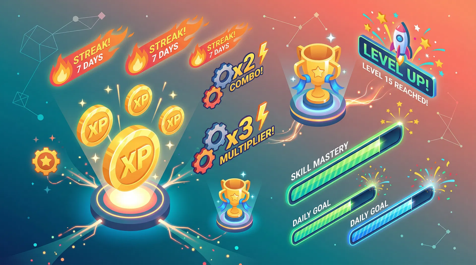 XP・コンボ・ストリーク・紙吹雪で毎日やりたくなる。